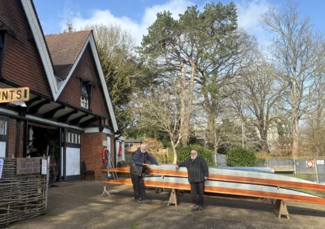 I’d arranged to meet Roger Forster and Bob Dowling, the double act who look after the boating side of things down here amongst the willows on the edge of the water, still high and fast flowing from the recent rainfall. They are preparing for the upcoming punt hire season and there is much work to be done. For their fleet of flat-bottomed boats, stored over winter in a large brick outbuilding need sanding down and varnishing, repairing, and repainting. And there are new punts to be finished, their workhorse shells made strong for a summer of bumps and battering. But then they are old hands at this kind of thing. Because they have both been at it a very long time.