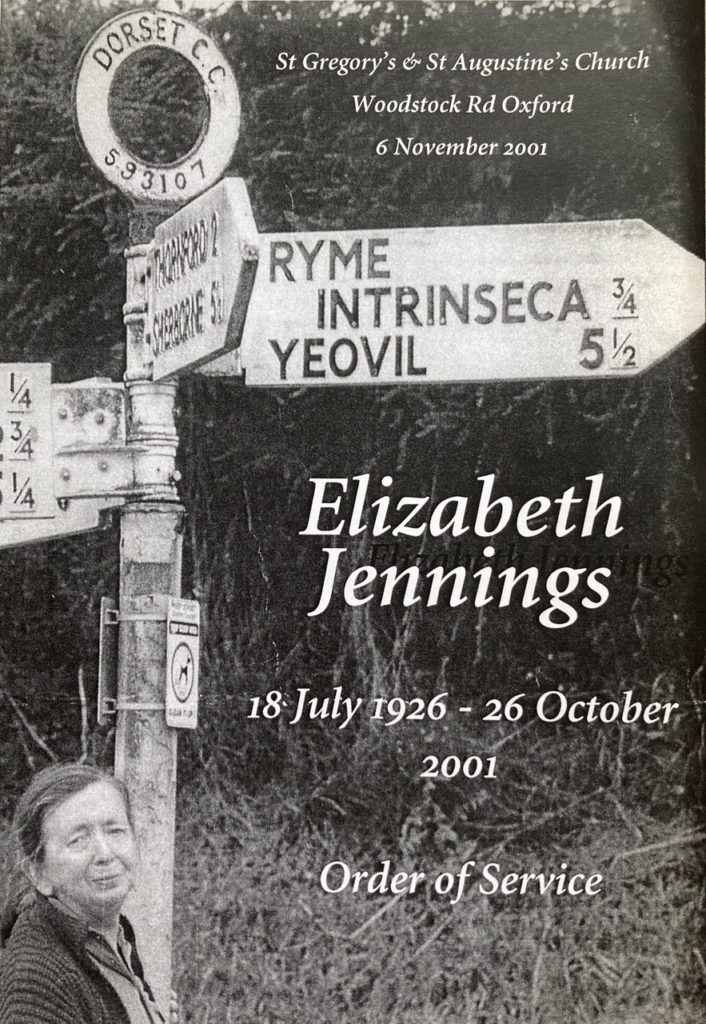 I have long been an admirer of Elizabeth Jennings’ poems and was delighted to see the road named after her. Thanks and congratulations to Susanna Pressel for achieving such suitable recognition.